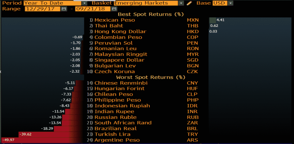 In line with EM equities, the EM currencies have seen some significant moves. Argentine Peso, Turkish Lira and Brazilian Real are all down by 49.97%, 39.62% and 18.29% respectively against the greenback (year-to-date) at the time this report was prepared.