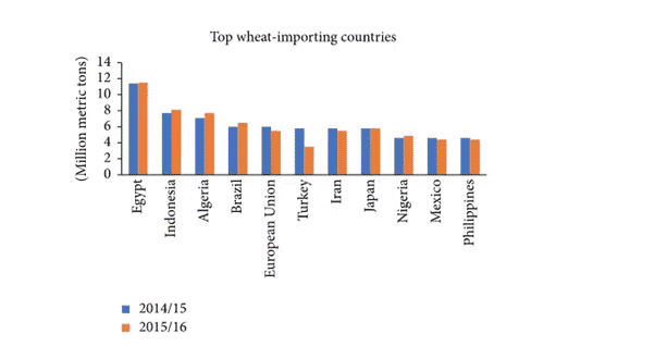 Countries with developing economies tend to be higher importers and consumers of wheat. In addition, countries in the Middle East and Africa import lots of wheat because they do not have an environment that is conducive to producing wheat. For instance, in countries in the desert such Egypt where there is little water, and it is exceptionally dry such as Egypt very little wheat is produced. This explains why Egypt is one of the highest exporters of wheat and if the demand from these countries it would likely impact on the overall price.