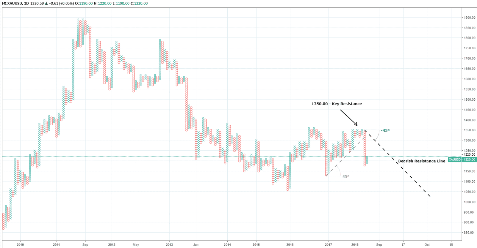 Yesterday gold reached a three-month high of $1,239.68 which, as we head into the final quarter of 2018, is once again stirring up price speculation and talk of a change in directional bias. While the fundamental aspects appear to be related to hiccups in global stock markets, we’ll focus on the technicals for clues as to how these moves might pan out in the medium to long-term.