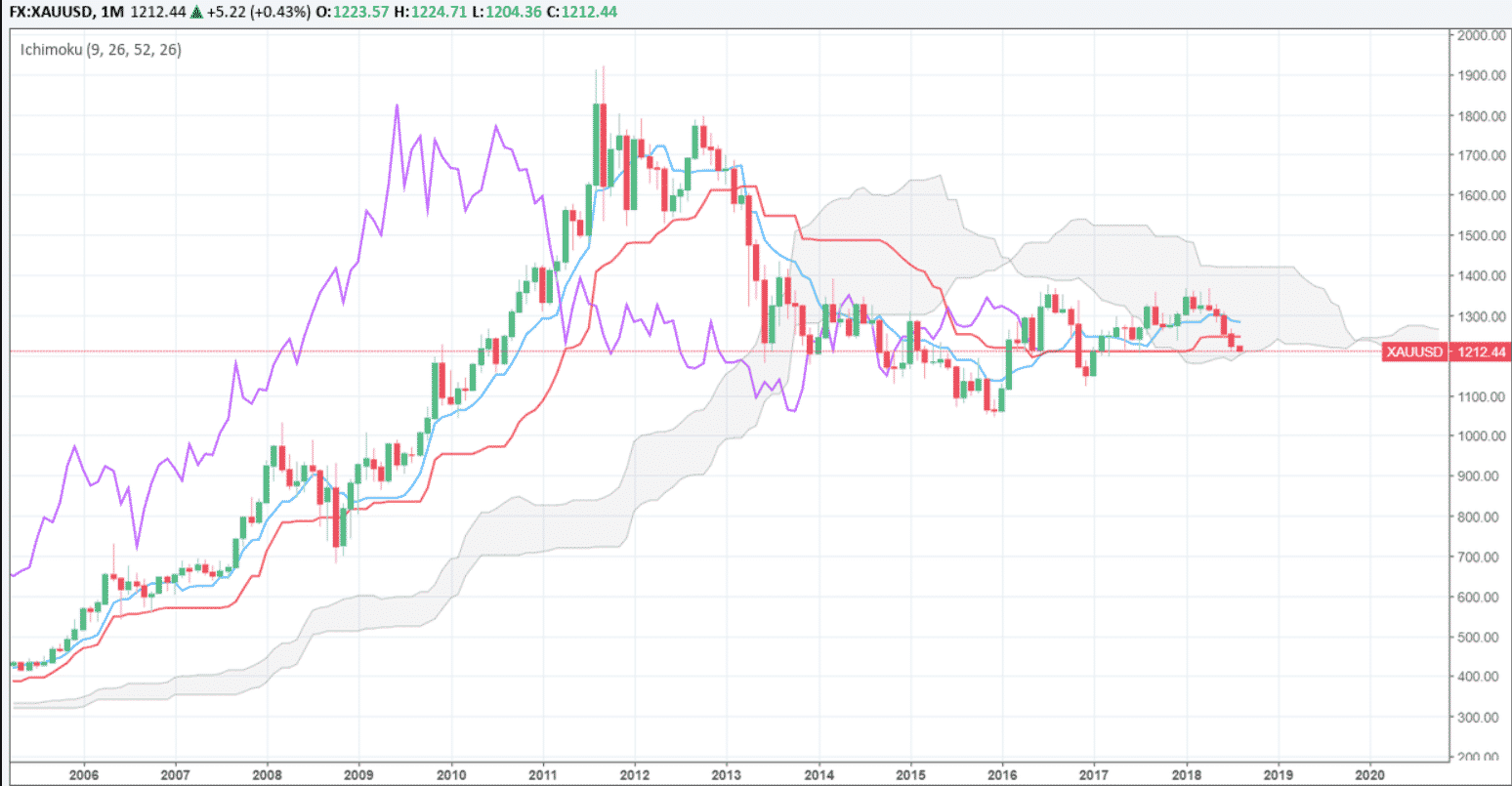 Sticking with the longer-term view, if we study the Ichimoku monthly chart above, you’ll notice that the $1200 level coincides with the bottom of the cloud formation. I see this going either one or two ways; perhaps we will see the price rebound off this mark and attempt another move towards the $1300 region, or, the slide will turn into an avalanche as the price gravitates towards the $1122.51 lows that were seen in December 2016. Should we see a close below $1200, I suspect this level will turn to an area of resistance and stifle movement in the short-medium term.