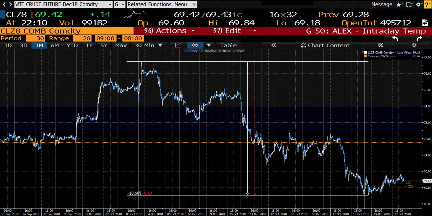 WTI Crude December Contract – October sell of from $76.72 to low of $68.53