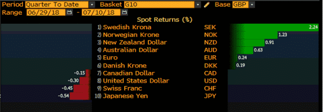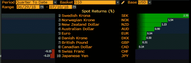 Similarly, the Euro has seen a slight improvement and has appreciated against more pairs within the G10 currencies since we stepped into Q3.