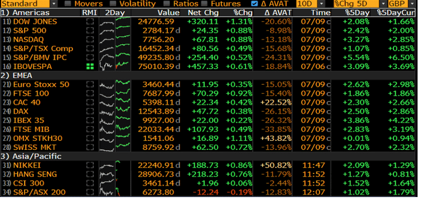 As soon as tariffs and counter-tariffs became a reality, weeks of volatility in the stock markets receded. Investors appear to have come to terms with the situation and risk sentiment has improved. As of writing, we can see that the stock markets are trending in positive territory.