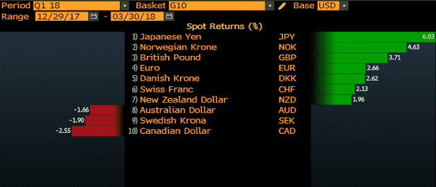 The British Pound also found some support at the beginning of this quarter compared to the previous one.