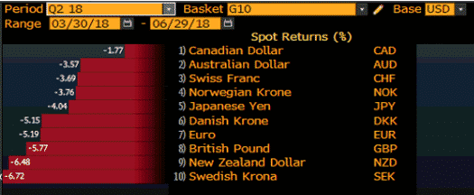 The US dollar gained impressively in the second quarter against G10 currencies. This growth of the greenback can be attributed to the following drivers: