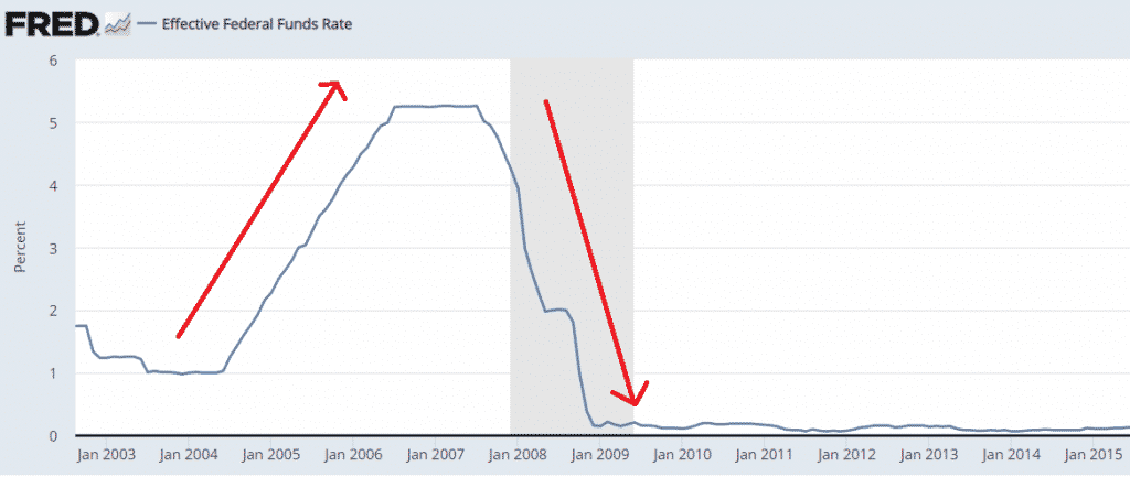 However soon after the crisis triggered, the Fed dropped its rates from 5.25% to 0.00% in only one-year time and kept its zero-rate environment for almost a decade.