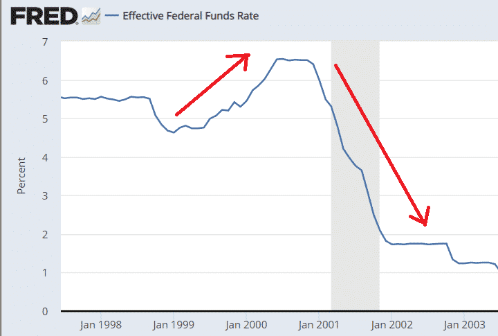 After the NASDAQ bubble burst, the Fed dropped its rates thirteen times in two years, to save its economy.