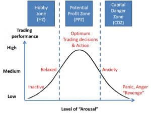 So, your mission after reading this post (as it’s always best to take some action) is to make a ten-second assessment of your ‘state of arousal’ before you press an entry or exit button for every trade this coming week (YES! You can start now). Make the judgement as to which of these described zones you may be trading from.