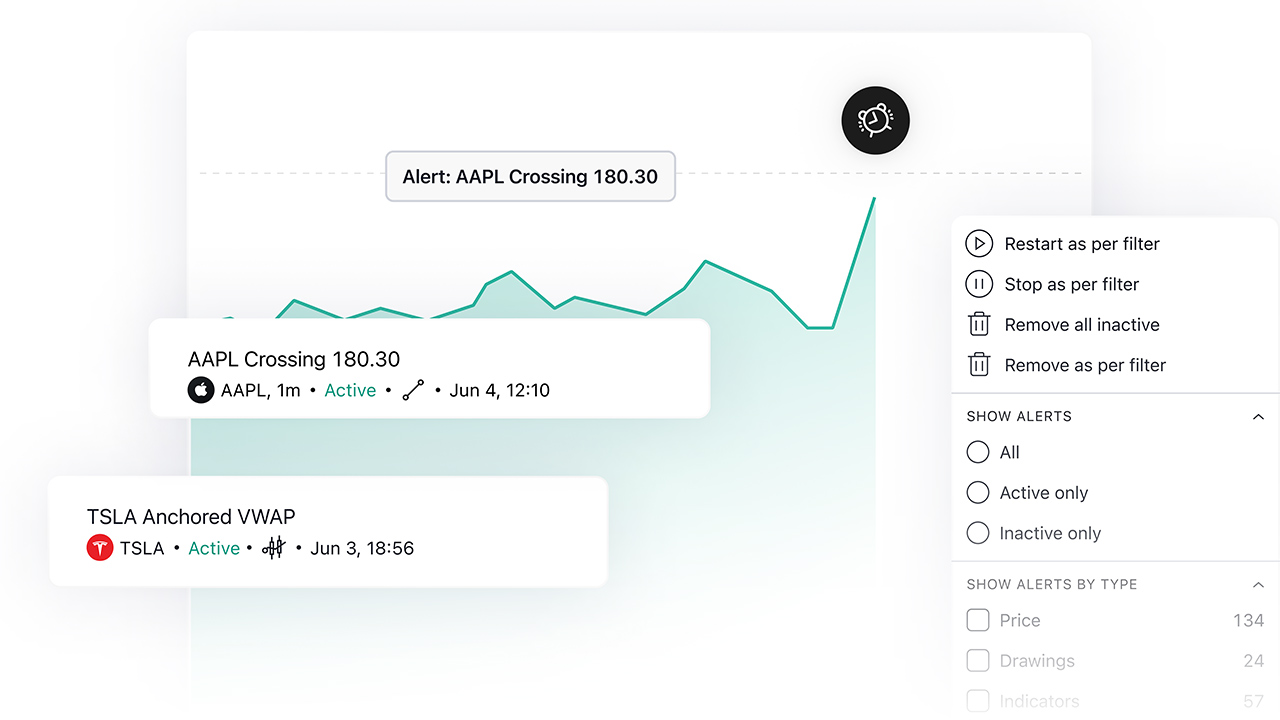 Stay informed and ready to act on market movements with these advanced yet easy-to-use charting tools.Tailored alerts