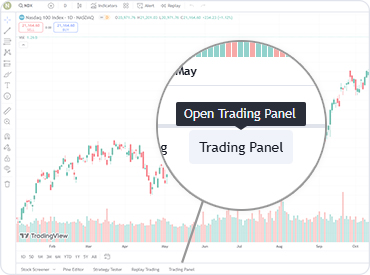 You can use TradingView’s Paper Trading feature to execute simulated trades without risking real money. To practice trading using Paper Trading, open the “Trading Panel” on a chart and select Paper Trading. *Note that this type of trading does not reflect the nature of speed and order execution on an integrated account.