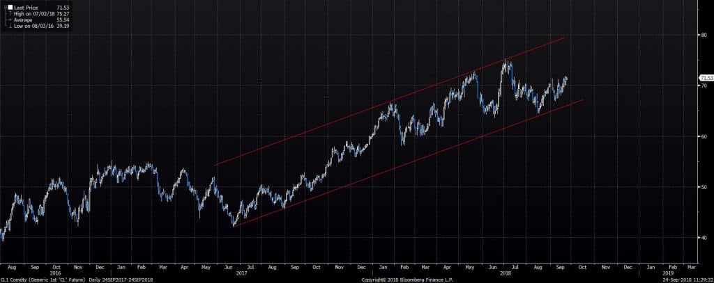 Commodities have been interesting too. Whilst a higher USD pushed commodities down in general, oil has remained relatively strong and is now trading close to a 3-year high.
