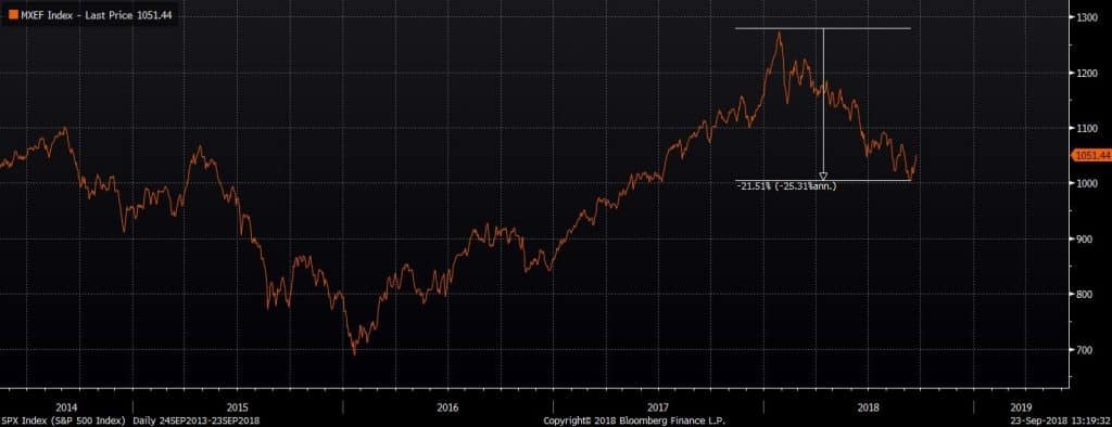 In the Emerging Markets (EM) space, a problem that began with a select few countries managed to end the golden performance of 2016-17, creating an emerging market rout. Based on MSCI EM index, emerging markets were down by almost 21.5% from February highs to the mid-lows in September.