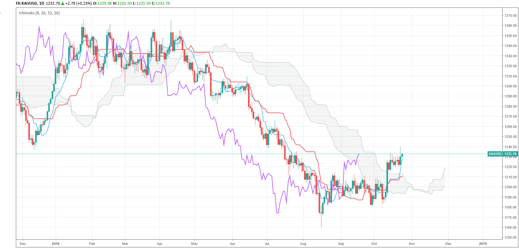 Yesterday gold reached a three-month high of $1,239.68 which, as we head into the final quarter of 2018, is once again stirring up price speculation and talk of a change in directional bias. While the fundamental aspects appear to be related to hiccups in global stock markets, we’ll focus on the technicals for clues as to how these moves might pan out in the medium to long-term.