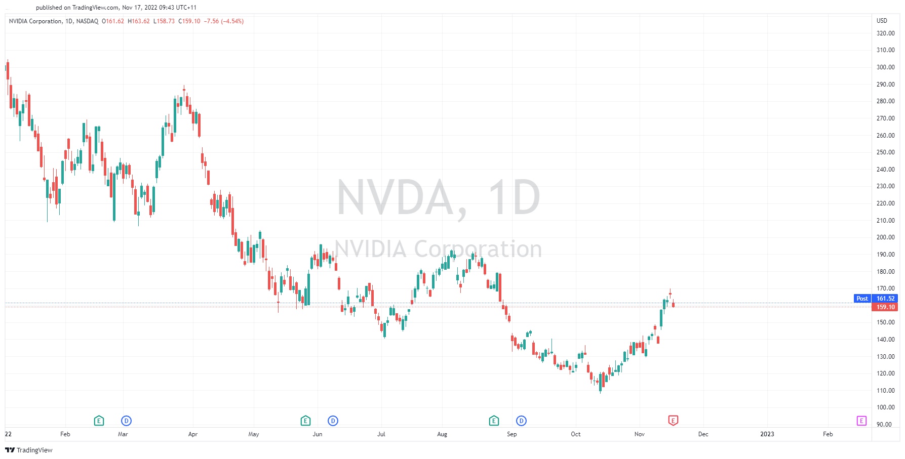 You can trade NVIDIA Corporation (NASDAQ: NVDA) and many other stocks from the NYSE, NASDAQ, HKEX, ASX, LSE and DE with Trading Markets as a Share CFD.