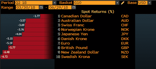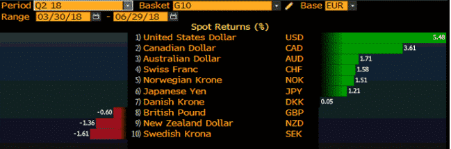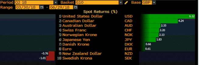 The US dollar gained impressively in the second quarter against G10 currencies. This growth of the greenback can be attributed to the following drivers: