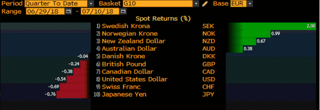Similarly, the Euro has seen a slight improvement and has appreciated against more pairs within the G10 currencies since we stepped into Q3.