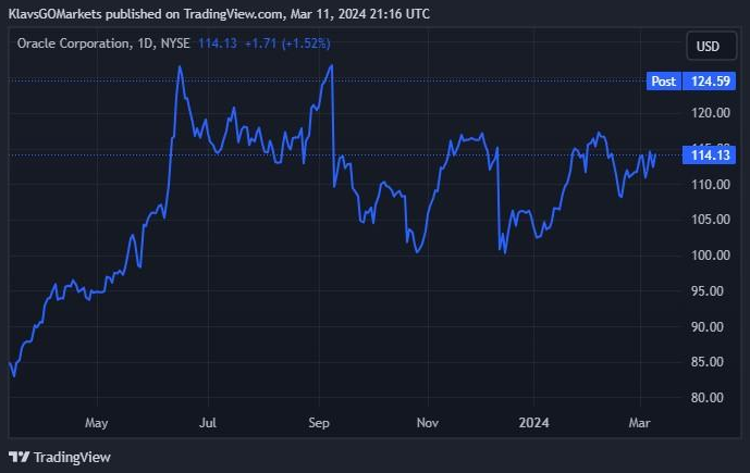 12 March 2024 By Klavs ValtersOracle Corporation (NYSE: ORCL) announced the latest financial results for Q3 of fiscal 2024 after the market close on Monday.